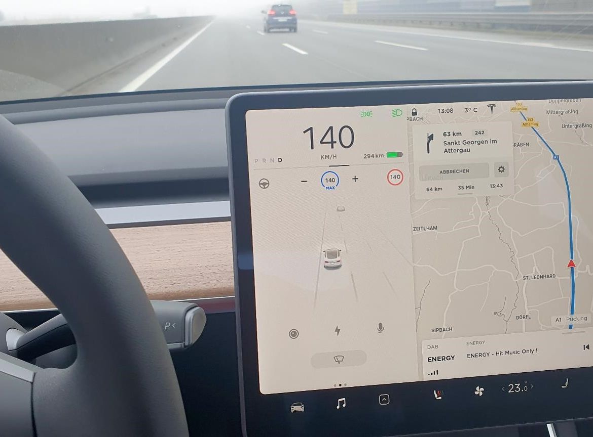 Raus aus Wien, geht es mit dem High-Tech Tesla flott Richtung Westen. Meine Taktik lautet nun öfter, aber kürzer, an den Ladestellen zu stoppen wie von vielen Tesla Besitzern im Internet empfohlen. Autopilot ein und erstaunlicherweise fährt der wirklich angenehm und gut. Das fühlt sich schon nach Zukunft an.